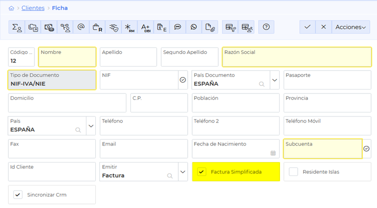 A la hora de crear el cliente, tenemos que asegurarnos de marcar la casilla “Fra Simpl”