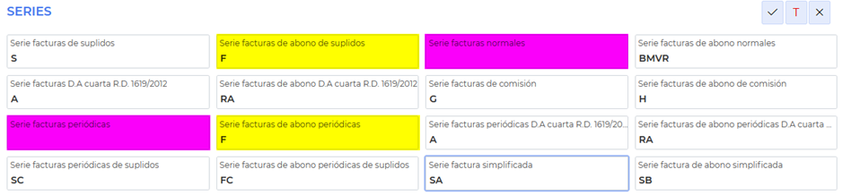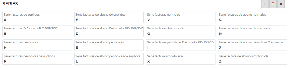 El tercer paso será activar la serie de facturación suplidos. Esto significa que, cuando emitimos una factura a un cliente en régimen general, sin cargos de emisión ni gastos de gestión, aparezca en la factura la serie de suplidos y la coletilla de “Servicio facturado por parte de…”