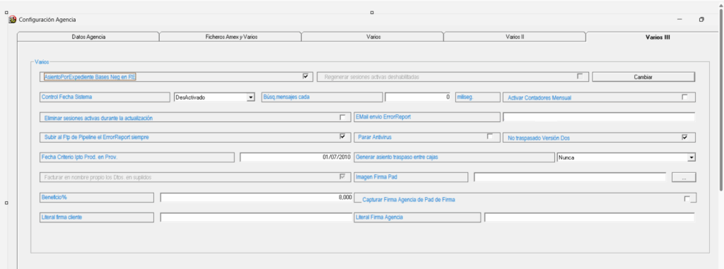 Este porcentaje se puede configurar para poner el que la agencia desee, por defecto está puesto el 8%.